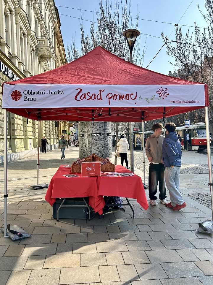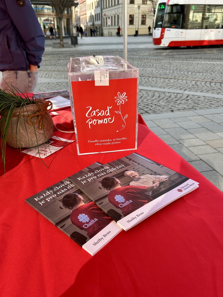 Sbírka probíhala také prostřednictvím charitních stánků v Brně, kde se do její realizace zapojily dobrovolnice z naší školy – studentky 1. ročníku vyšší odborné školy, vzdělávacího programu Sociální práce. Na stánku nabízely kolemjdoucím pytlíčky se semínky rostlin za dobrovolný příspěvek a zároveň přibližovaly smysl celé sbírky.
