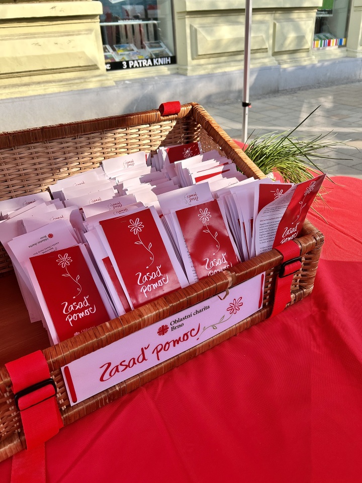 Sbírka probíhala také prostřednictvím charitních stánků v Brně, kde se do její realizace zapojily dobrovolnice z naší školy – studentky 1. ročníku vyšší odborné školy, vzdělávacího programu Sociální práce. Na stánku nabízely kolemjdoucím pytlíčky se semínky rostlin za dobrovolný příspěvek a zároveň přibližovaly smysl celé sbírky.